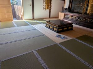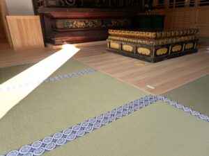 少し前になりますが大和郡山市にある豊臣秀長公の菩提寺春岳院の改修工事でお世話になっております建設会社様より本堂、事務所に新畳納めさせて頂きました。