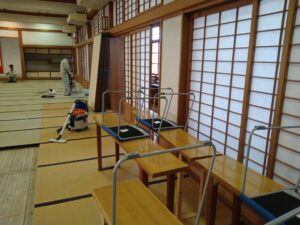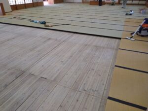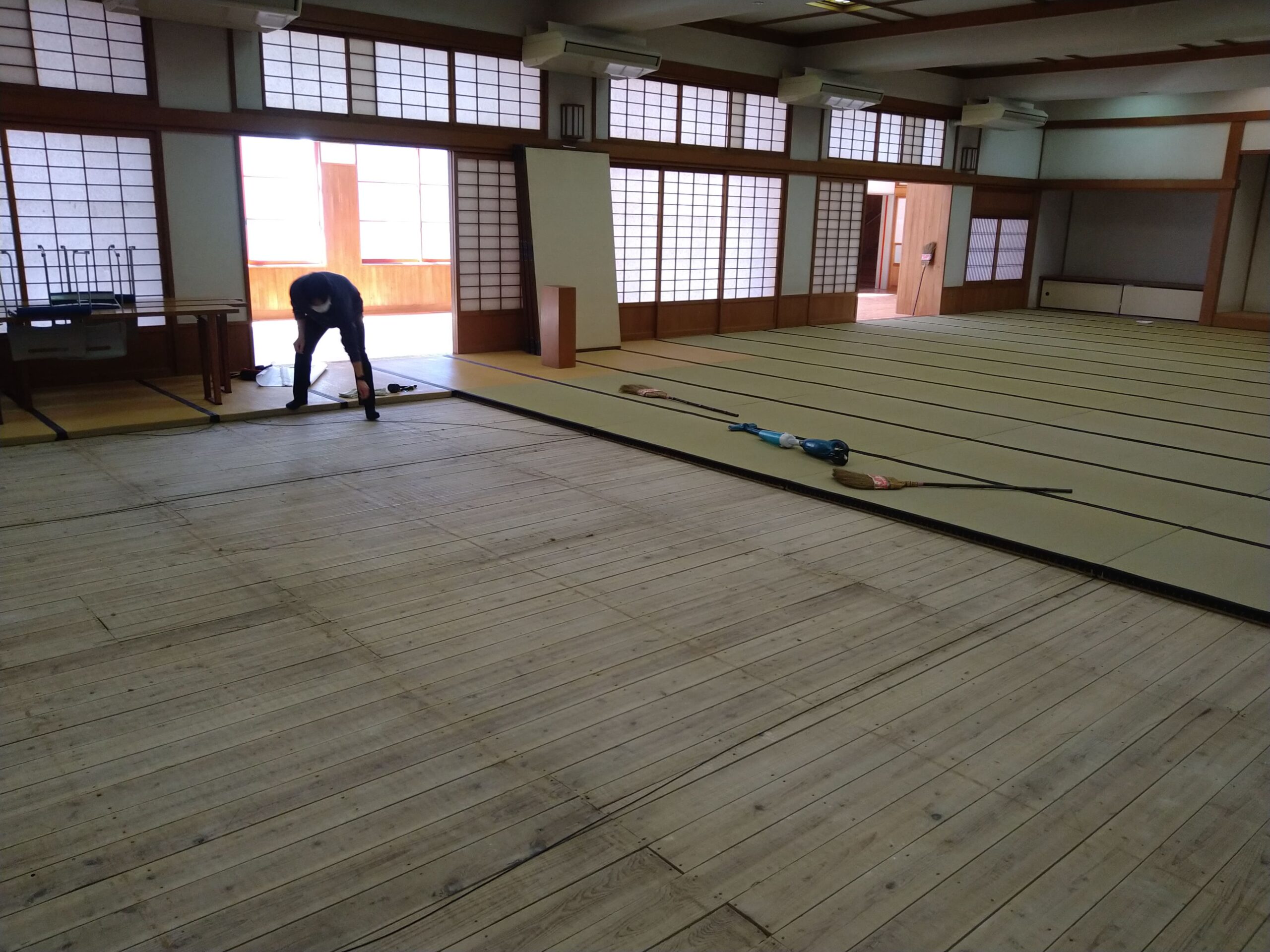 天理教本部の施設2回目搬入敷き込み完了です。32畳引き上げ4月13日に納めます。 6間×22幅完了迄もう少しです!